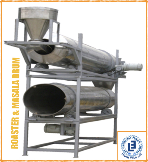 Roaster & Flavour Drum (Double Decker) is designed for roasting the extruded snacks and to apply seasoning to the product in a uniform manner.
